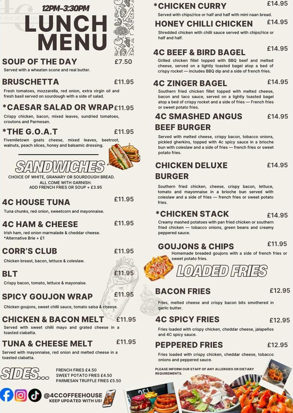 Nestled just off The Mall in Armagh, 4c Coffee House is THE retreat for a delightful coffee experience. More than just somwhere to sip your favorite brew, we offer a tempting menu filled with everything from hearty breakfasts to gourmet burgers, wraps, and sandwiches and an array of tempting treats & desserts. Whether you're looking to catch up with friends or simply relax, this is the perfect place to unwind.