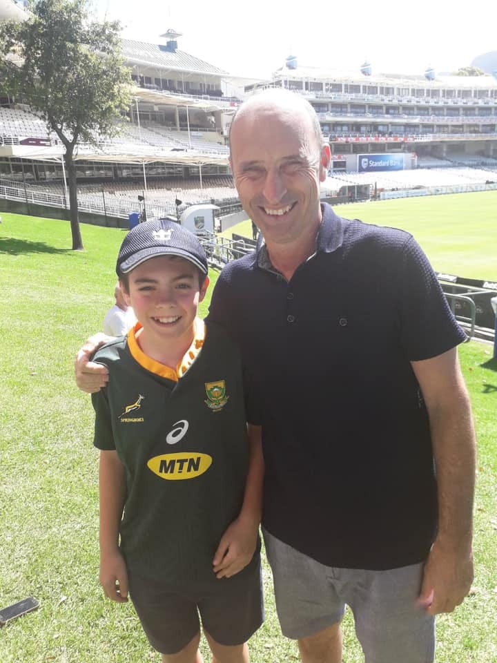 A brilliant photo of one of our promising junior cricketers Henry Cross out in Cape Town with former England captain and Sky Sports presenter Nasser Hussain. Many thanks to his dad Stephen for the picture.