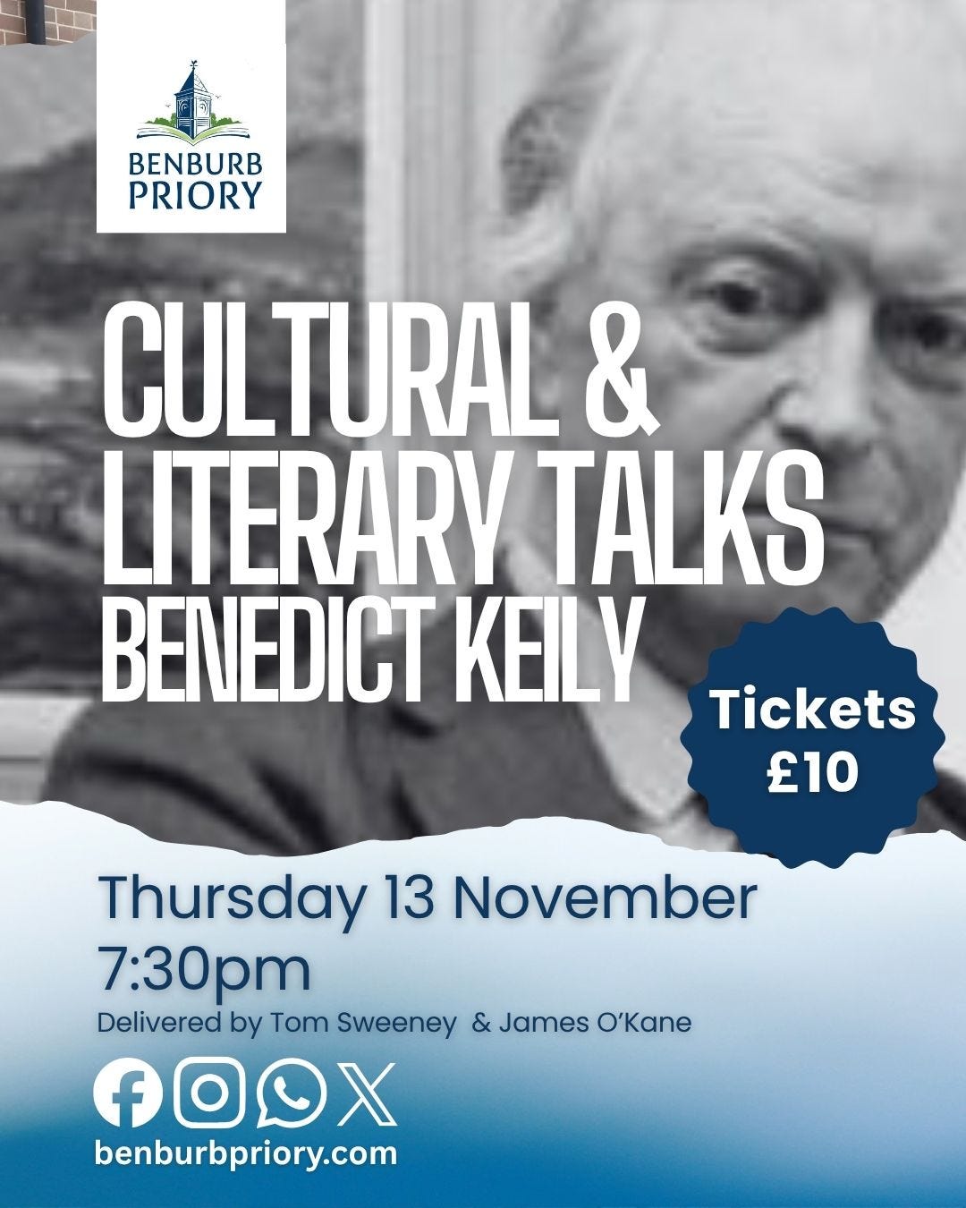 Benburb Priory is set to host a special literary event this November, shining a spotlight on the life and work of one of Ireland’s most celebrated writers, Benedict Kiely.